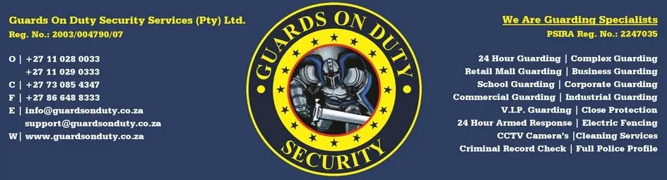Guards On Duty Security Services provides Guarding services to dedicated areas / suburb closures in the greater Greater Gauteng, Midrand and Pretoria region.